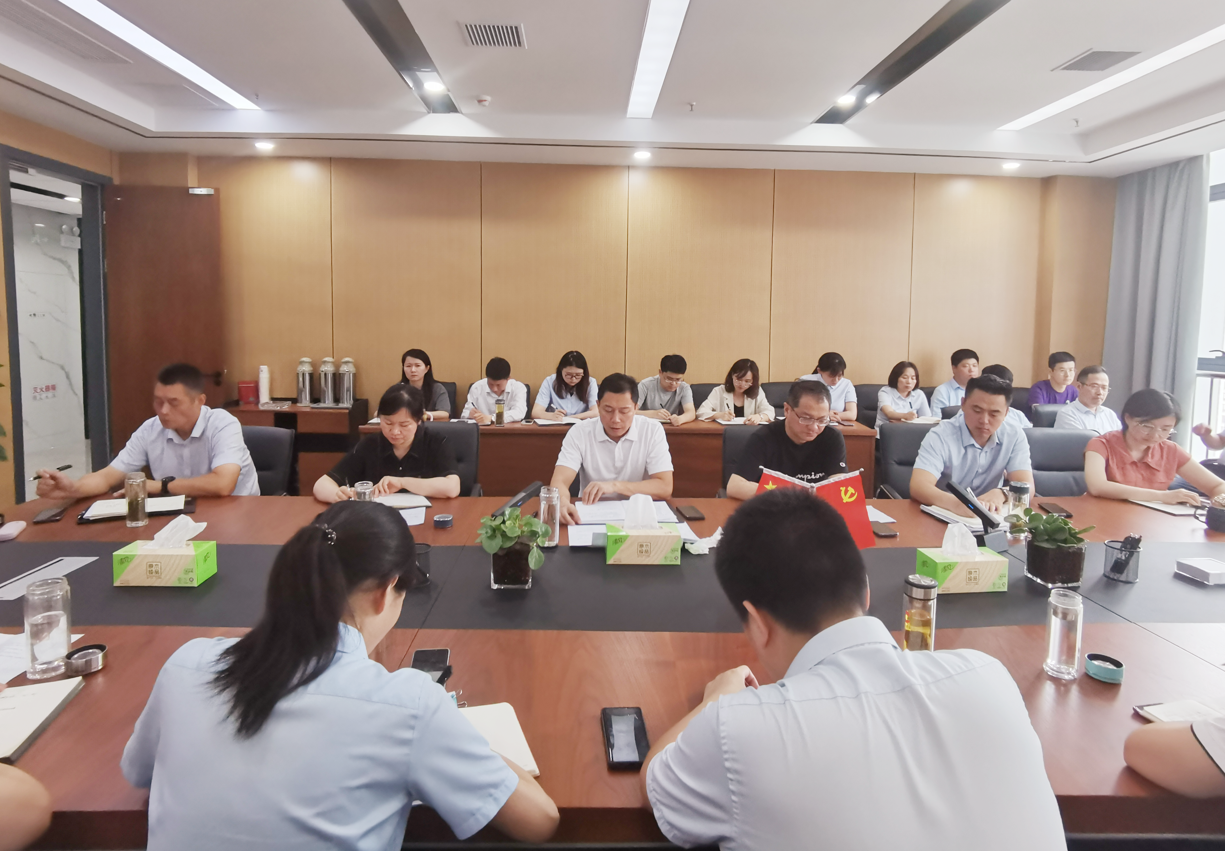 7月22日,市擔(dān)保集團(tuán)召開全體員工會(huì)議,傳達(dá)學(xué)習(xí)省轄市市委書記、市長(zhǎng)二季度工作會(huì)議精神,黨委書記、董事長(zhǎng)、總經(jīng)理高文進(jìn)主持會(huì)議。