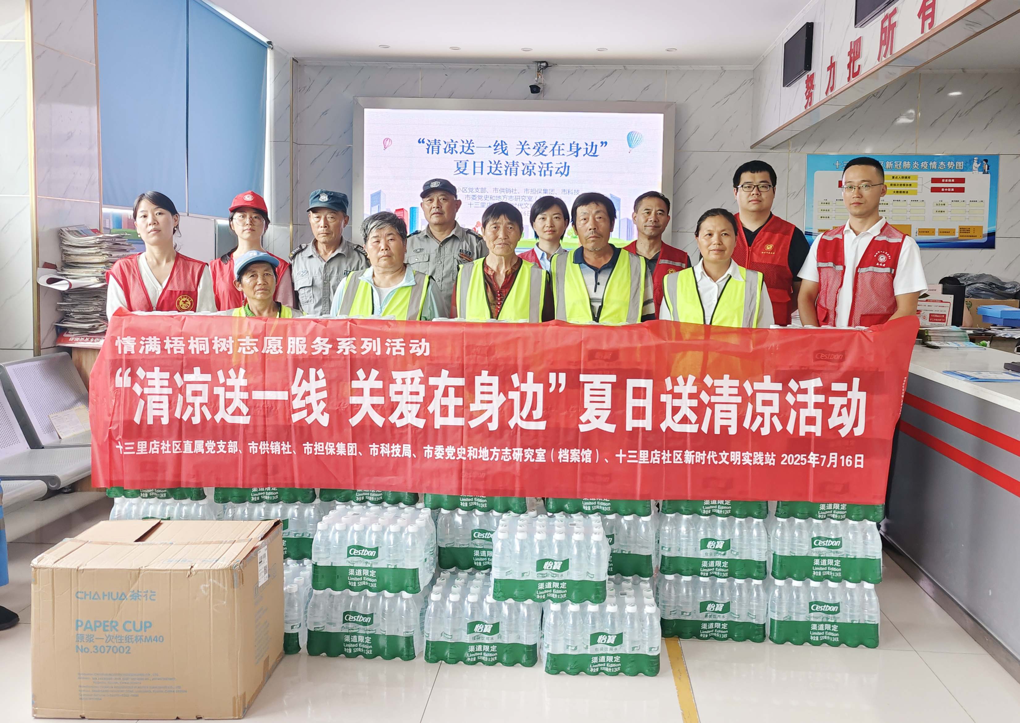 - 入夏以來,持續(xù)高溫炙烤大地,給戶外作業(yè)的環(huán)衛(wèi)工人帶來了嚴(yán)峻“烤”驗。為給炎炎夏日里高溫下作業(yè)的社區(qū)環(huán)衛(wèi)工人們送去一絲清涼和關(guān)愛,7月16日,市擔(dān)保集團(tuán)三個黨支部聯(lián)合共建單位的黨組織,共同開展“清涼送一線 關(guān)愛在身邊”黨員志愿服務(wù)活動,為共建的十三里店社區(qū)全體環(huán)衛(wèi)工人送去黨組織的關(guān)懷與問候。 活動中,黨員志愿者們將提前準(zhǔn)備好的礦泉水、毛巾、香皂、花露水等防暑降溫物品一一分送到轄區(qū)每一位環(huán)衛(wèi)工手中,并向他們表達(dá)真誠的問候和感激,是他們冒酷暑、頂烈日,用實際行動維護(hù)著社區(qū)的環(huán)境整潔,收到物品的環(huán)衛(wèi)工人們顯得格外開心。 通過夏日送清涼志愿服務(wù)活動,進(jìn)一步拉近黨員與群眾的距離,密切黨群關(guān)系,把“我為群眾辦實事”落到實處。通過“小清涼”傳遞“大文明”,助力營造尊重勞動者、共建和諧文明社區(qū)的良好氛圍。下一步,市擔(dān)保集團(tuán)將進(jìn)一步發(fā)揮自身優(yōu)勢...