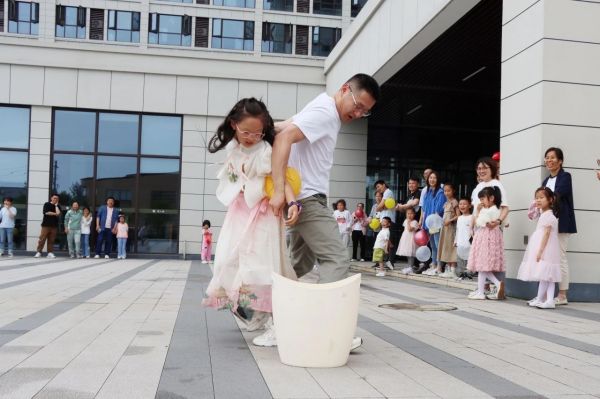 接著,在活動主持人的組織下,小朋友們進(jìn)行了兩個互動小游戲。大家跟隨著動感的音樂傳遞手中的玩偶,當(dāng)主持人喊“停”時,拿到玩偶的“幸運(yùn)兒”需要介紹自己并表演一個節(jié)目。小朋友們都十分自信地亮出了“看家本領(lǐng)”,唱歌、跳舞、詩朗誦等等才藝信手拈來,獲得全場一片掌聲。第二個小游戲叫作“合力運(yùn)球”,員工與孩子背靠背在規(guī)定時間內(nèi)將3個氣球運(yùn)送到指定地點(diǎn),既是對親子默契的考驗(yàn),更是速度與智慧的較量。最終決出速度最快的前三組家庭,獲得一份小禮品。